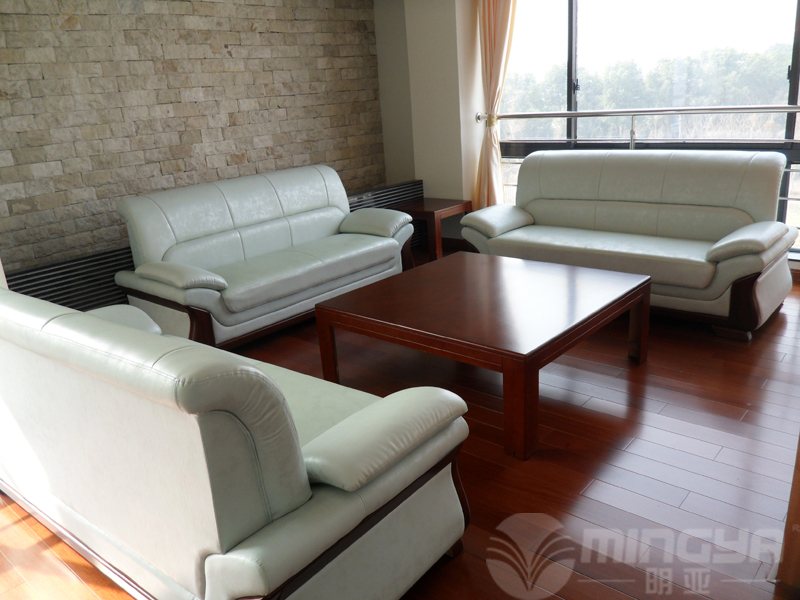 接待區(qū),依然是實木牛皮辦公沙發(fā)套裝