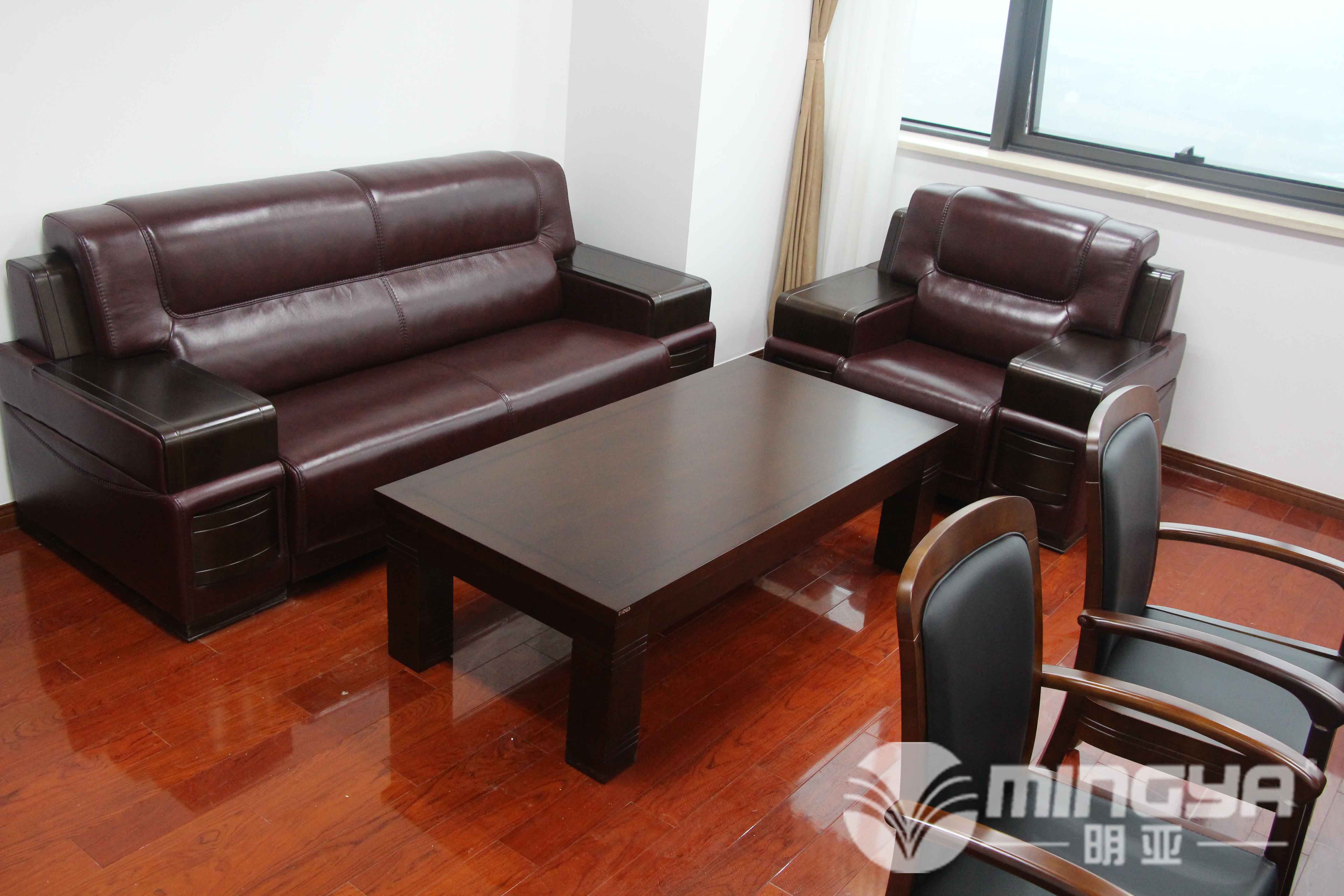 大型辦公沙發(fā):采用進口棕色牛皮,實木框架