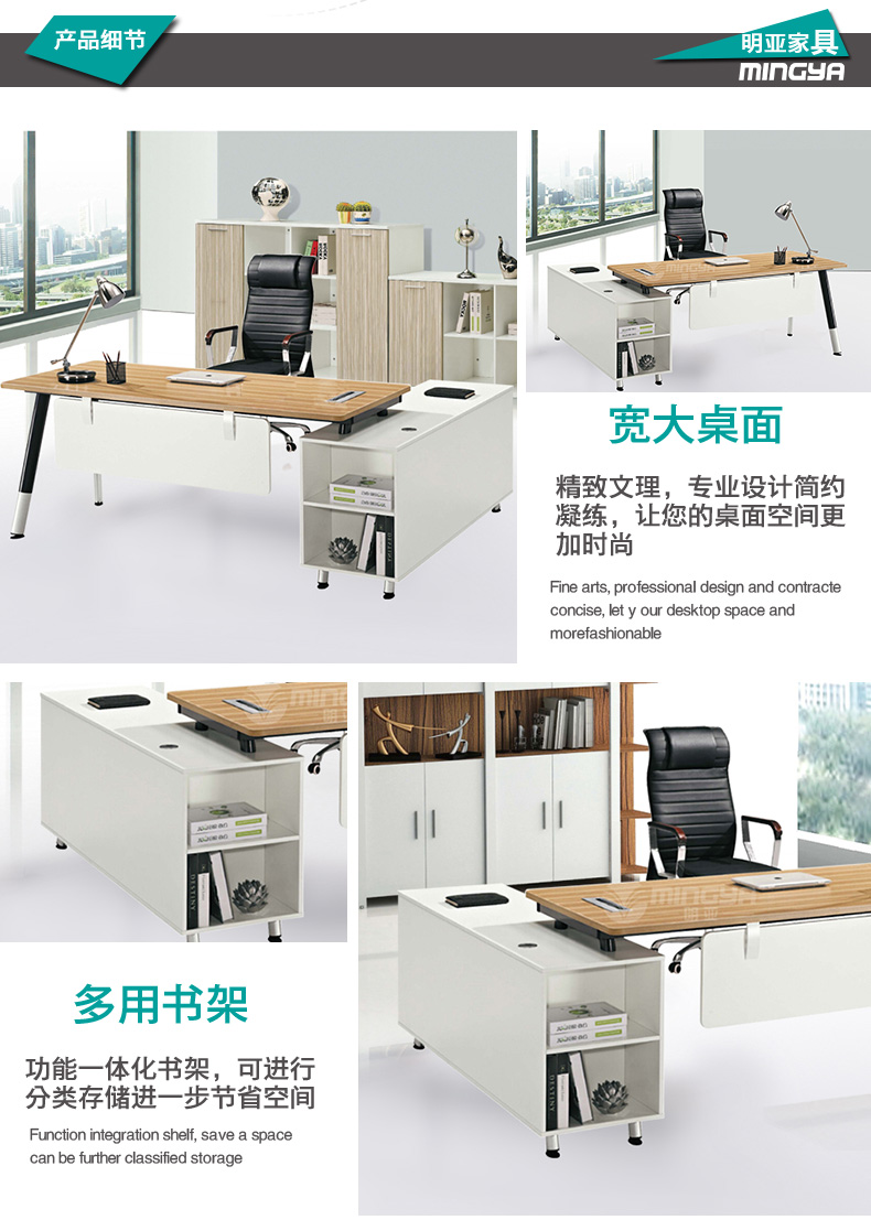 上海明亞辦公家具有限公司成立于2012年,擁有高素質(zhì)的管理市場(chǎng)銷(xiāo)售人才和優(yōu)秀的專(zhuān)業(yè)設(shè)計(jì)人才。是一家專(zhuān)業(yè)從事設(shè)計(jì)、生產(chǎn)及銷(xiāo)售全套中高檔環(huán)保健康辦公家具為一體的公司。主要產(chǎn)品涵蓋:大班臺(tái)系列、辦公椅系列、文件柜系列、屏風(fēng)系列、隔斷系列,會(huì)議桌系列等,可來(lái)樣定制辦公家具并定做異形柜上百種規(guī)格。 上海明亞辦公家具推行:“免費(fèi)的咨詢(xún)顧問(wèn)、免費(fèi)的電腦輔助繪圖設(shè)計(jì)服務(wù)、免費(fèi)的現(xiàn)場(chǎng)產(chǎn)品模擬示范服務(wù)、快速準(zhǔn)時(shí)的送貨服務(wù)、專(zhuān)業(yè)安裝與售后維修服務(wù)”等。這些措施確保了客戶(hù)在選擇明亞辦公家具品牌后,能夠讓客戶(hù)坐享其成,享受至善至美的售后服務(wù),讓我們的事業(yè)共同發(fā)展,共享豐碩!我們以?xún)?yōu)秀的品質(zhì)、環(huán)保概念、優(yōu)惠的價(jià)格,優(yōu)質(zhì)的服務(wù)回報(bào)廣大國(guó)內(nèi)外客戶(hù),以良好的設(shè)計(jì)及環(huán)保理念打造明亞品牌。愿上海明亞能為更多的您和您的公司提供更多的服務(wù)。 |
